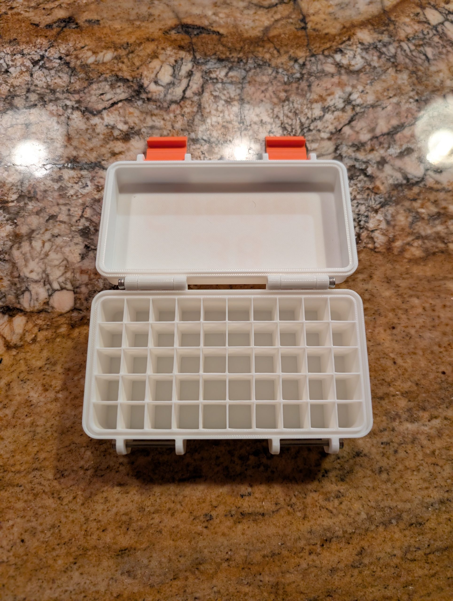Munitionsbox für 50 Schuss Munition. Schrift ist in den Deckel eingeprägt.