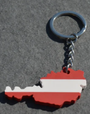 In den Nationalfarben rot-weiss-rot. Mit Schlüsselring & Kette
